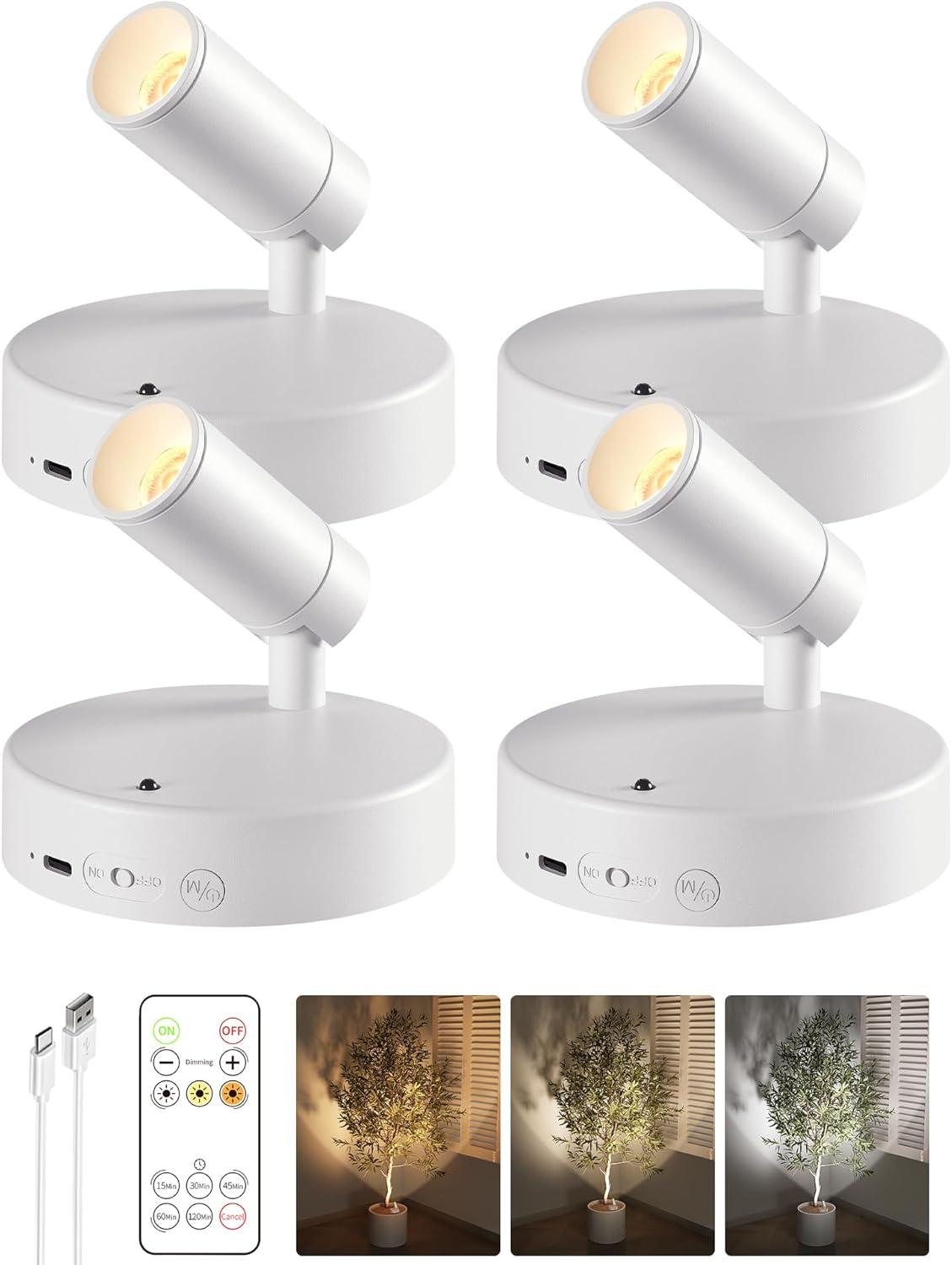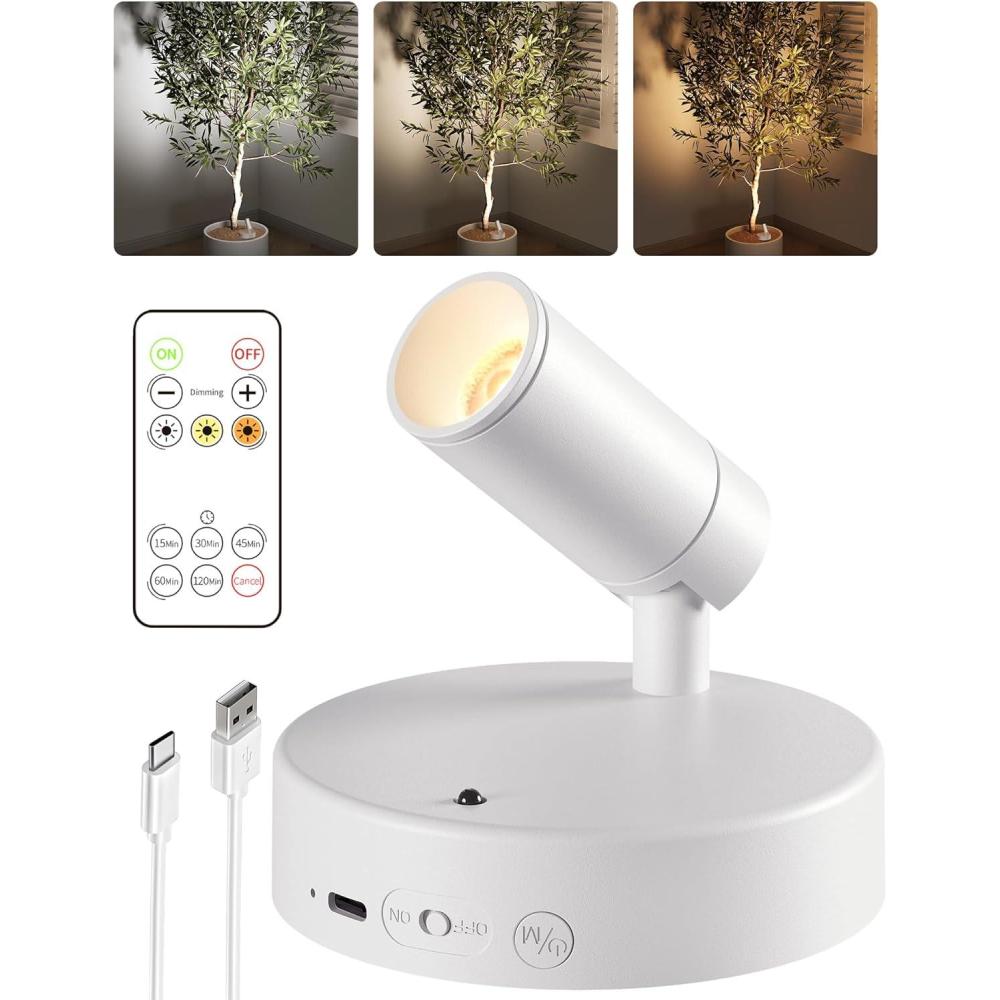 1.5500mAh Rechargeable Spotlight: The EZVALO plant spotlight indoor features a powerful 5500mAh rechargeable battery, Provide up to 150 hours of low brightness and 24-25 hours of high brightness lighting.Using the equipped USB-C fast charging, Battery operated spot light can be fully charged within 4 hours, providing cordless, long-lasting 100 lumens glare-free lighting,Very suitable for indoor plant lighting and picture lighting